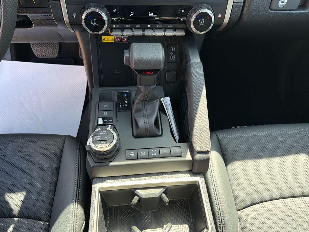 TRD Off-Road Premium Package (A/T) — includes 18-in. TRD alloy wheels, SofTex®-trimmed seats with heated and ventilated 8-way power-adjustable front seats, leather-trimmed heated steering wheel, 14-in. Toyota Audio Multimedia display, Multi-Terrain Monitor (MTM), JBL® 30 Premium Audio with JBL® FLEX 31 portable speaker, moonroof, Qi-compatible wireless charging, 46 dual zone automatic climate control, Front and Rear Parking Assist with Automatic Braking (PA w/AB) 38 and Pedestrian Detection, 44 prewired auxiliary switches, digital rearview mirror, Integrated Trailer Brake Controller (ITBC), 29 power open/close tailgate, 45 61 Digital Key 16 capability, 400W/120V 1 AC power inverter, and power horizontal rear window