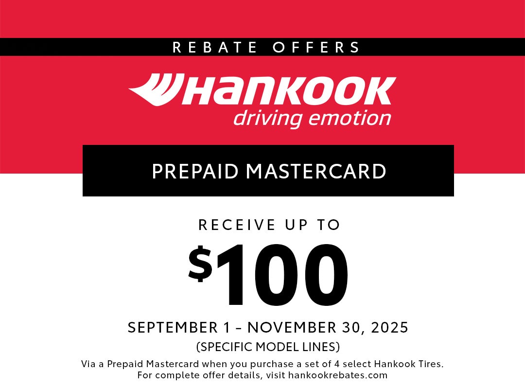 Take advantage of our Winter Tire Offer with up to $100 rewards on premium tire brands, including Hankook, Firestone, Goodyear, Yokohama, General Tire, and Bridgestone! Browse our wide selection of high-quality winter and snow tires—this limited-time offer gives you unbeatable rewards on winter tires. You'll find great options for snow tire specials or the best winter tires. Secure your preferred time slot, review winter tire prices and location options, and get detailed cost estimates by easily scheduling an appointment online. Don't miss out on these winter tire savings near you!